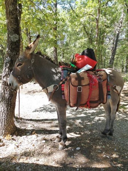 L’âne est équipé d’un bât et de sacoches, très utile pour porter le pique-nique ou votre matériel de bivouac.