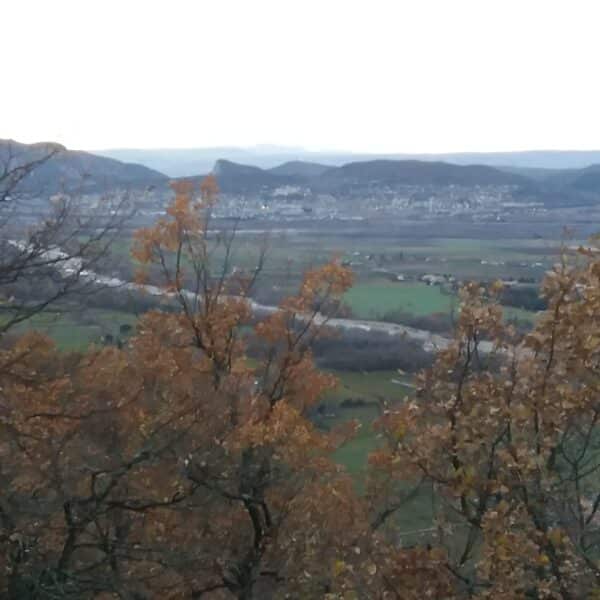 En grimpant jusqu’au sommet, nous longeons l’ancienne enceinte avant d’atteindre les vestiges de la forteresse du Moyen-Age. Le donjon, construit sur le rocher, est de taille impressionnante : nous dominons la vallée et le village de Volx. Une archère a été dégagée. Aux alentours se trouvait l’ancien village de la communauté de la Roque de Volx, abandonné pour difficulté d’accès, en 1443, au profit du nouveau village.De nombreux tas de pierre en témoignent. La translation s’est effectuée à la suite d’un accord entre la communauté et les seigneurs de Brancas de l’ancien village de La Roque.