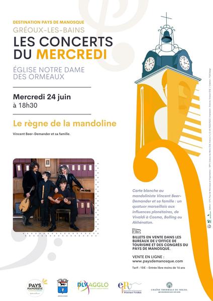 Carte blanche au mandoliniste Vincent Beer-Demander et sa famille : un quatuor marseillais aux influences planétaires, de Vivaldi à Cosma, Bolling ou Akhénaton. Lauréat du Prix de l’Originalité 2023, il promet de vous ravir.