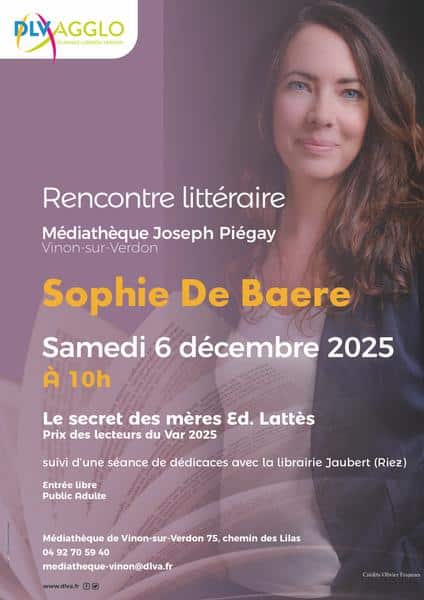 L'auteure Sophie De Baere vient de se voir attribuer (le 21 novembre 2025) le Prix des lecteurs du Var 2025 (catégorie littérature générale)