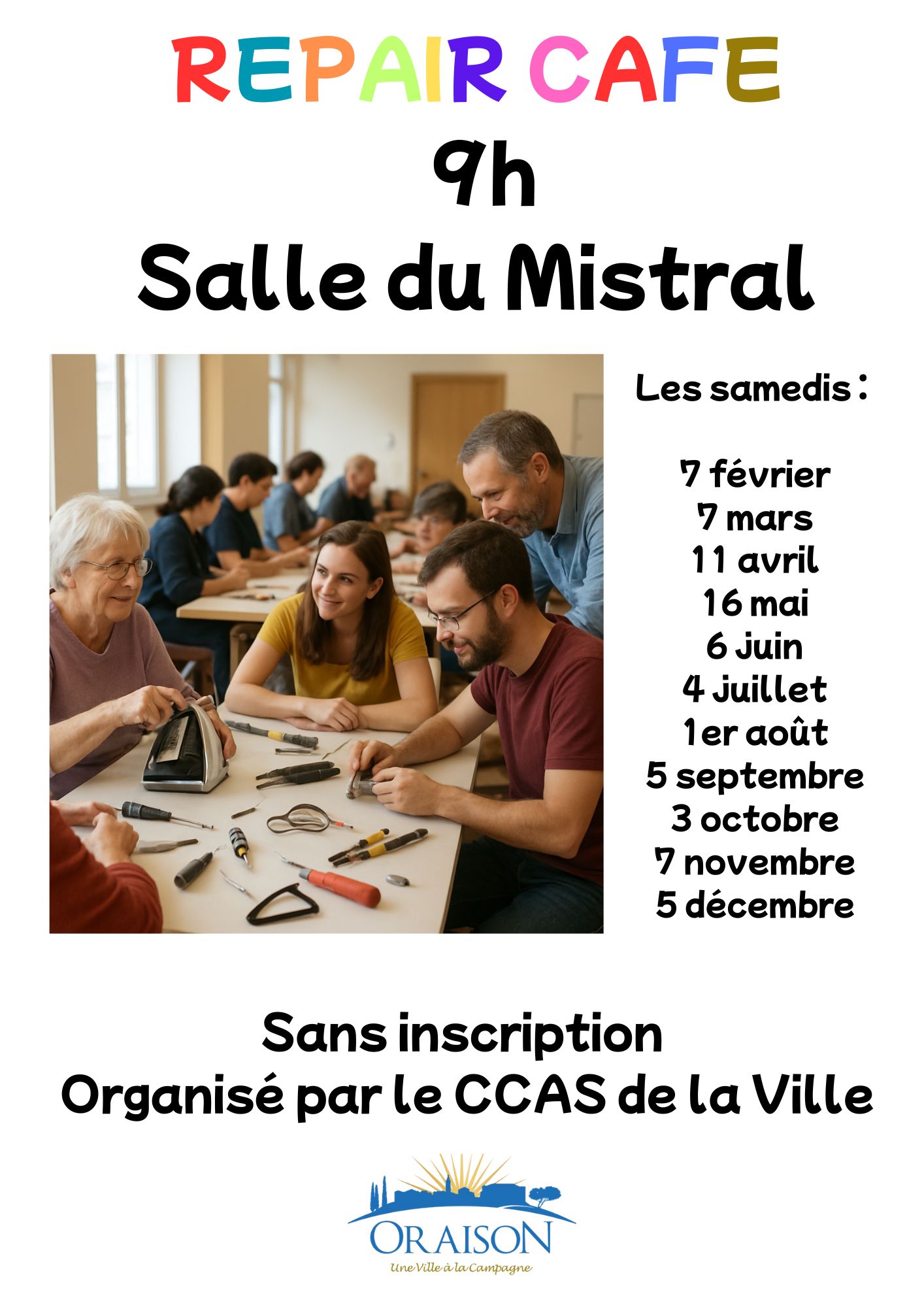 Venez réparer et donner une seconde vie à vos objets, nos réparateurs bénévoles vous aideront en vous transmettant toutes leurs connaissances... Organisé par le CCAS d'Oraison