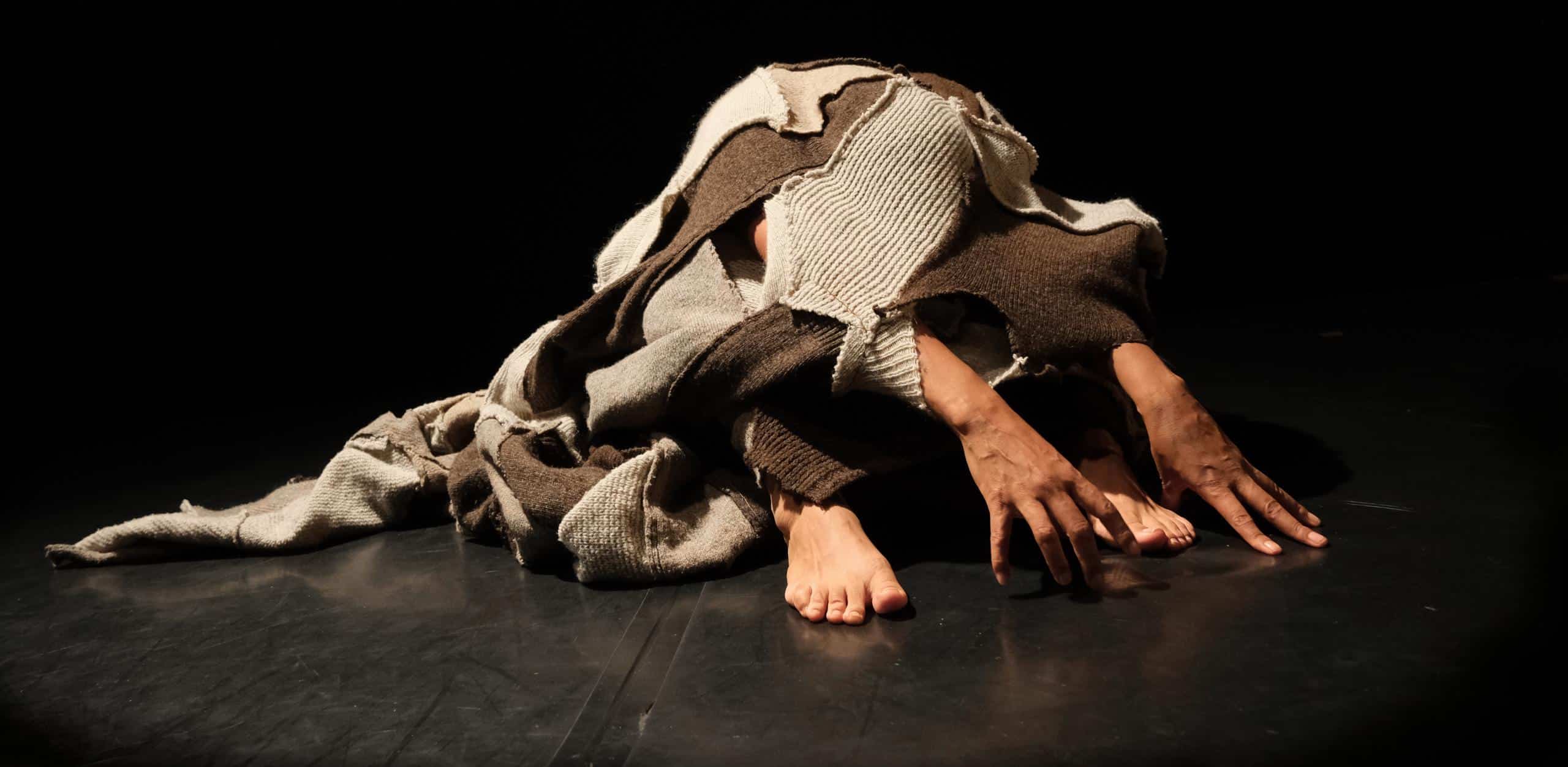 Dans le coin du plateau, une grande couverture de laine est posée. Petit tas inerte. Un bruit survient. Puis un deuxième. La couverture commence alors à s’animer tout doucement, comme si elle sortait d’une longue hibernation. Urdimbre se réveille. Le mouvement de la vie est en marche, s’amplifie. Perpétuelle métamorphose.