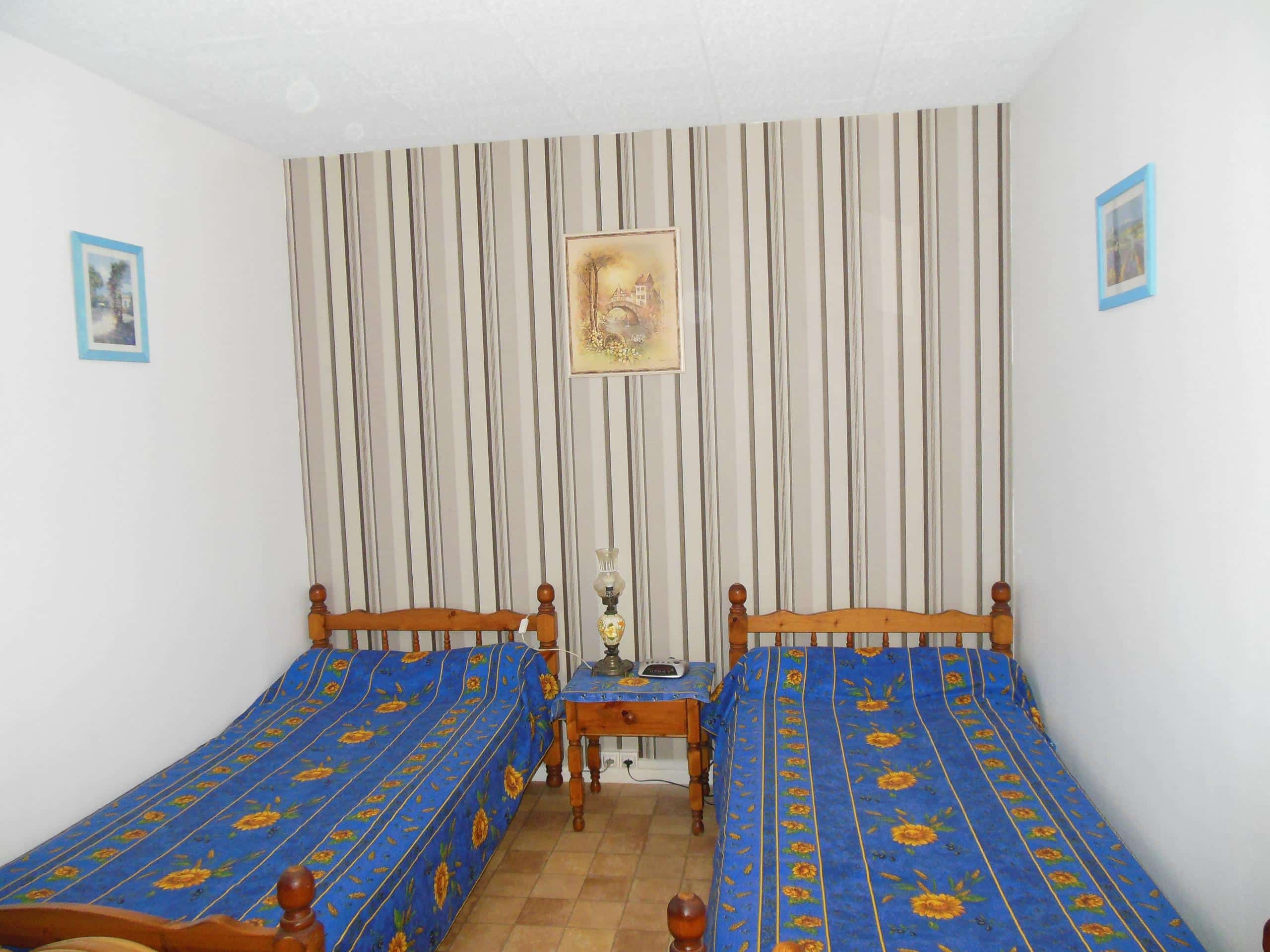 2 lits en 90cm, télé, 2 fauteuils, wifi.