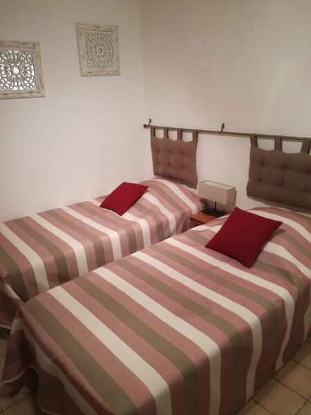 Balcon, toilettes séparées, 2 lits simples en 90cm, lave-linge, WIFI et parking privé. Appartement non fumeur.