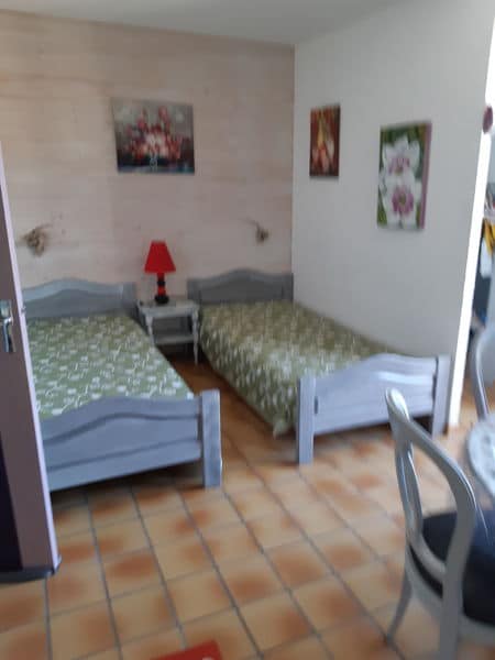Tout confort, climatisation, lave-vaisselle, télé, micro ondes, four, internet, sdb, machine à laver, pièce centrale avec coin cuisine, 2 lits d'une place + un canapé convertible. Proche du casino et à 500 m du vieux village, appartement classé, 4 marches pour rejoindre l'appartement. 2 bâtiments d un étage dans la résidence. Internet inclus.