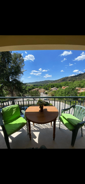 Un super balcon face aux collines pour profiter du soleil couchant ! Une table + deux chaises + deux transats le tout sur une pelouse artificielle.