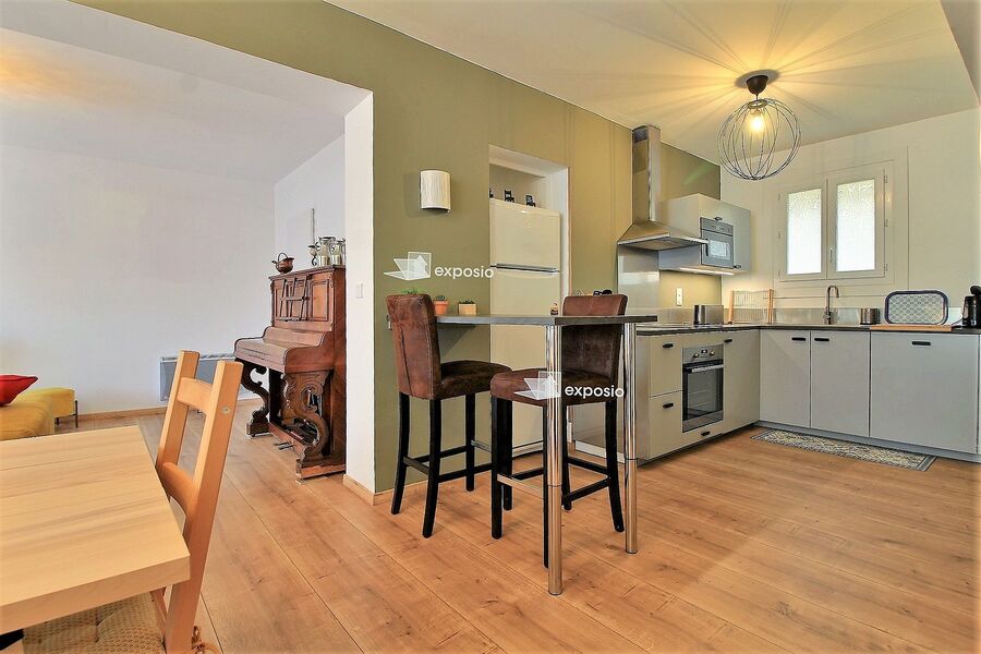 Grande pièce à vivre de 40 m², avec salon et cuisine américaine, chambre avec lit en 160, salle d'eau et toilettes séparées. Surface totale 63m², wifi gratuite, local à vélos.
