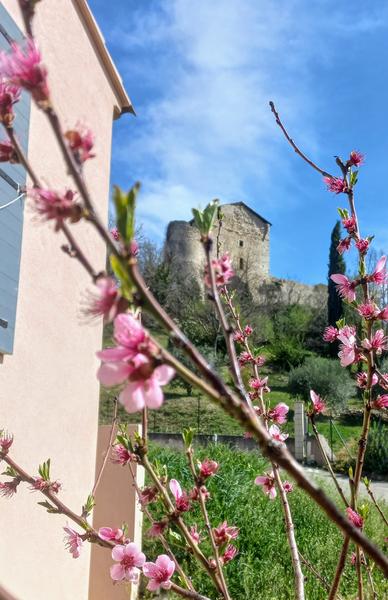 Vous bénéficierez de calme avec une vue exceptionnelle sur le château et une vue dégagée sur les collines. Les commerces (boucherie, boulangerie, restaurants…) sont à 5 minutes à pied accessibles grâce à un passage dans un sous-bois, l’établissement thermal est à 15 minutes à pied, 5 minutes en voiture.