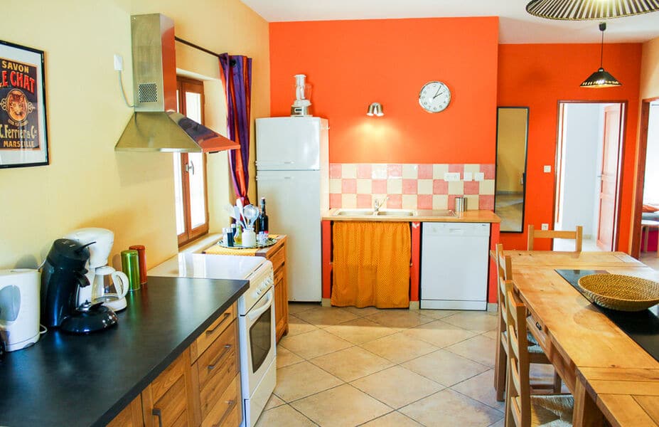 Buanderie commune avec 2 lave-linges. Terrasse privative ombragée. Gîte entièrement au rez-de-chaussée, adapté aux personnes à mobilité réduite. Belle pièce à vivre avec cuisine / séjour / salon. Chambre 1 (1lit 160). Chambre 2 (2 lits 90). Salle d'eau. Wc indépendant. Les lits sont faits a votre arrivée. Chauffage central. Toutes charges comprises, y compris le ménage en fin de séjour.
