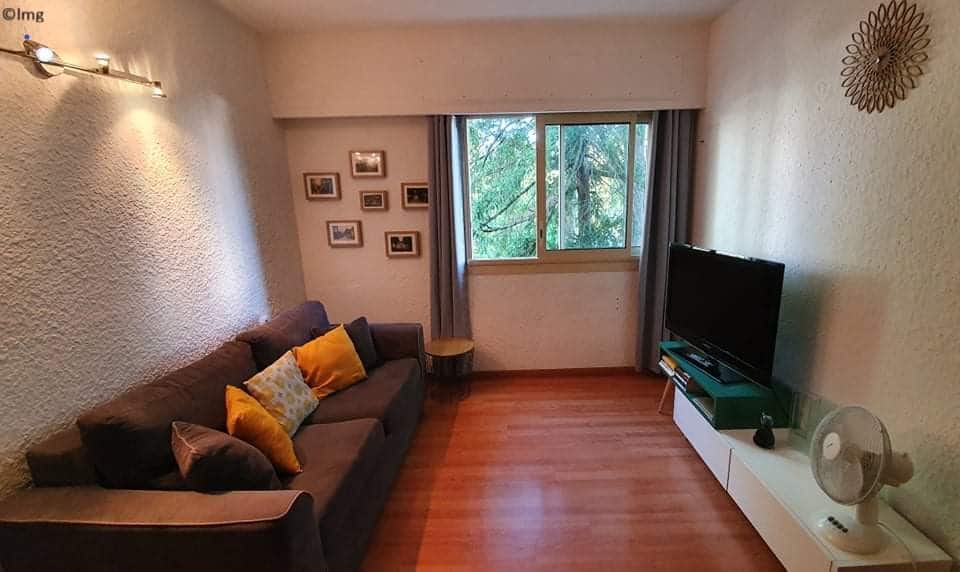 1 pièce à vivre composée d’une table et 2 chaises, un canapé convertible, un écran plat 117 cm, un ventilateur.