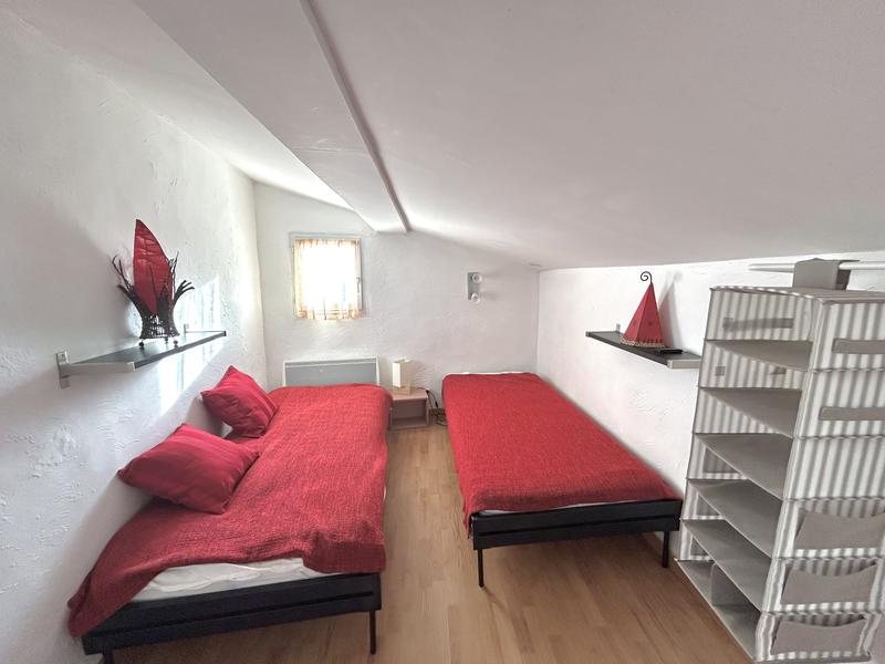 A l'étage une chambre avec un lit double et une avec deux lits en 90cm , cet hébergement convient parfaitement aux couples ou aux petites familles. De plus, vous bénéficierez d'un accès Internet Wifi pour rester connecté pendant votre séjour.