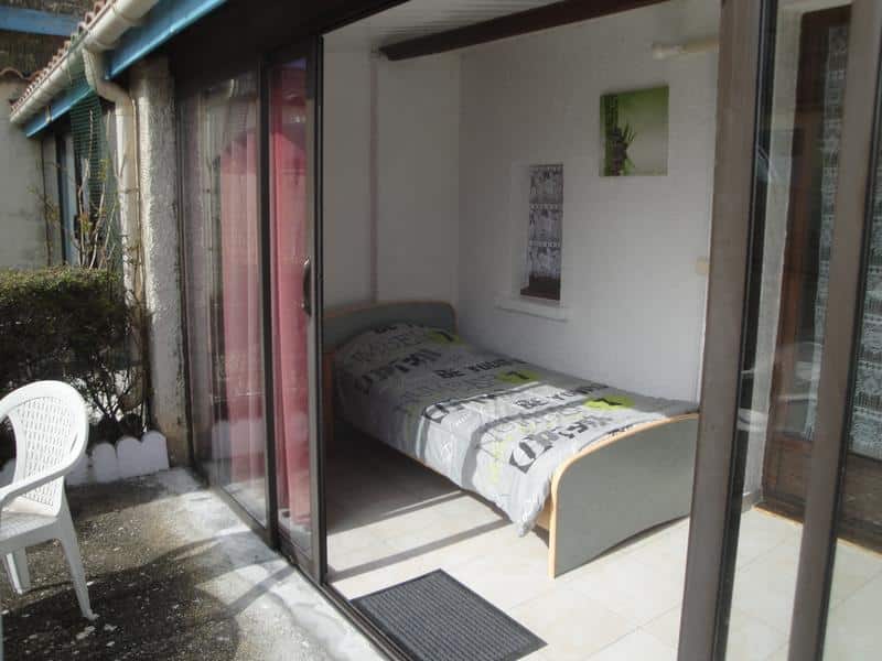 En bas vous trouverez une grande chambre, 1 salle de bain avec douche à l'italienne, d'un wc et d'une petite chambre qui donne accès à la terrasse du bas.