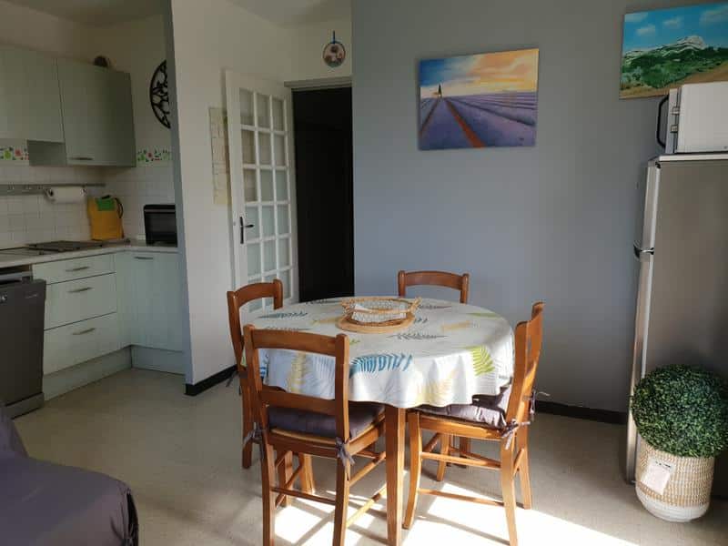 Cet appartement situé au 3ème étage avec ascenseur se compose d'une entrée avec un grand placard, une salle d'eau, un WC indépendant, une chambre avec climatisation, avec 2 lits de 90 et une armoire, une pièce à vivre avec climatisation et cuisine entièrement équipée avec lave vaisselle, congélateur...