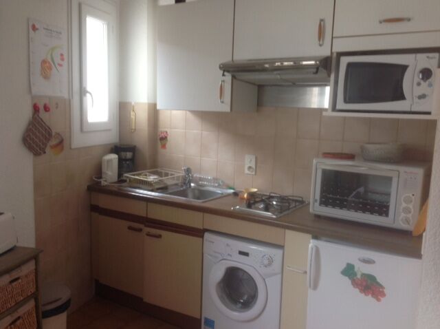 2 lits jumeaux, coin cuisine: four et micro ondes, plaque vitrocéramique 2 feux, lave linge