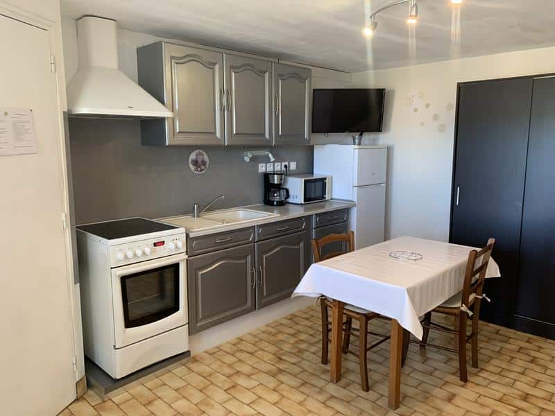 • une cuisine entièrement équipée (plaques de cuisson, réfrigérateur, micro-ondes, vaisselle, etc.),