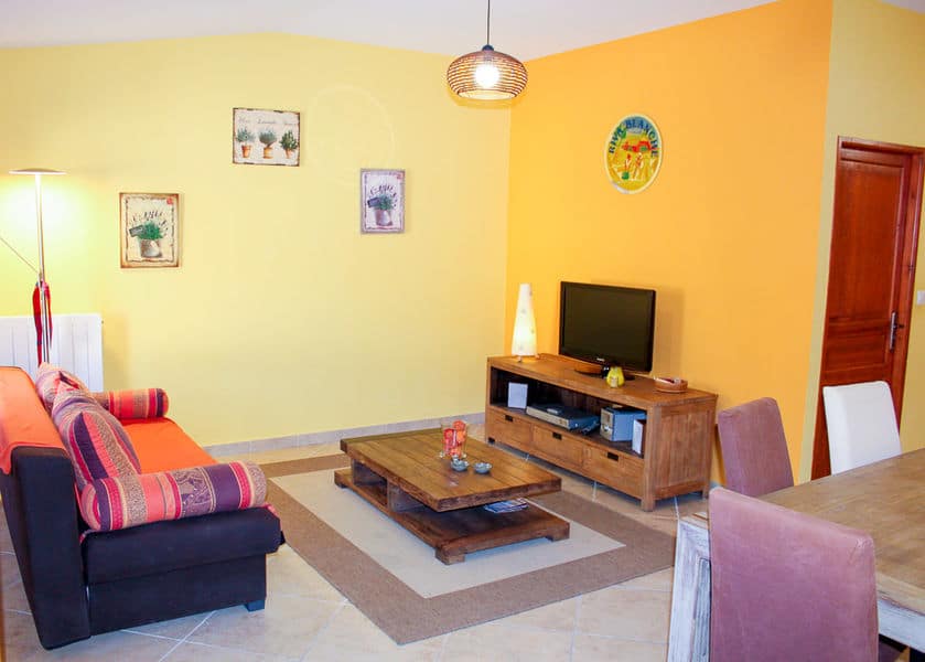 Buanderie commune avec 2 lave-linges. Terrasse privative ombragée. Gîte entièrement au rez-de-chaussée, adapté aux personnes à mobilité réduite. Belle pièce à vivre avec cuisine / séjour / salon. Chambre 1 (1lit 160). Chambre 2 (2 lits 90). Salle d'eau. Wc indépendant. Les lits sont faits à l'arrivée. Chauffage central. Toutes charges comprises, le ménage en fin de séjour également.