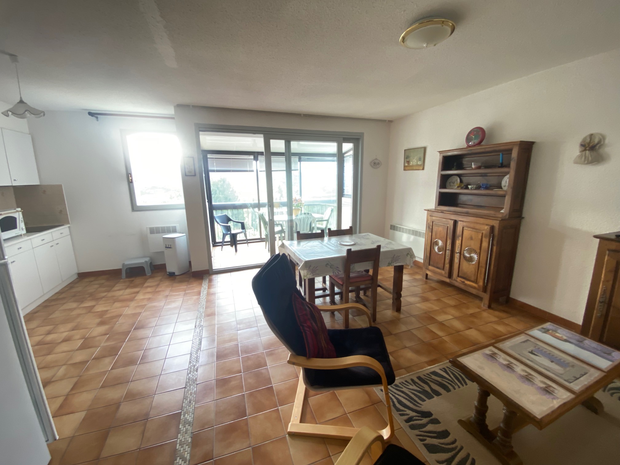 Appartement T2 avec vue sur Château. Bien situé. Véranda agréable. A 15-20 mn des Thermes à pieds.